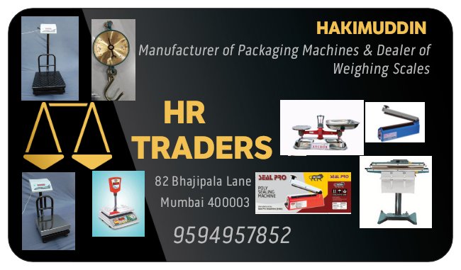 Established in the year 2020 for more than 1 year we at HR TRADERS have gained immense expertise in retail as well as wholesale trading and supplying of all type of one of the finest quality and best and wide range ofI am licensed dealer of weighing scales and distributor of packaging machines across india and provide it at very reasonable discounted and competitive rate with effective and timely delivery.