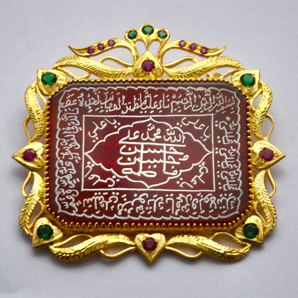 We have precious collection of Akik Takhtis, Mor danas,etc. On the costumers demand we make takhtis of their size and their range. We can write all the things you suggest to us on your order. We write "Nadeali & Panjatan together on a takhti. We provide you with many types of shapes in takhtis like square, rectangle, oval, aasu shape,etc. We also make exclusive Chandi Takhti for bridal purpose