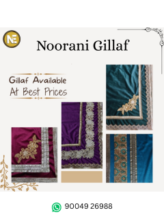 WE ATE NOORANI ENTERPRISES, THE ONLY MANUFACTURER OF FULLY NAMAAZI GILLAAF, FOR ALL DARGHA SIZES, WITH RUMAAL. WE HAVE INVESTED HEAVILY IN MATERIAL BULK PURCHASE OF IMPORTED VELVETTE, HEAVY LACES, WHICH MAKES OUR GILLAF EXTRAORDINARY DESIGNED WITH MUCH LOWER PRICING. WE AS A MANUFACTURE ARE INVITING DEALERS FOR SELLING OUR PRODUCTS AT ALL OVER MAZAAR MARKET. WHO ANY ARE INTERESTED TO JOIN OUR VISION CAN CONTACT US. WE HAVE OUR DEDICATED WEBSITE FOR ONLINE PURCHASE ( LAUNCHING SOON ) WWW.NOORANI** FOR ANY ASSISTANT YOU MAY ALSO WHATS APP ON 9224440529. SIZES COLOUR QUALITY AFFORDABILTY ALL ENDS AT NOORANI GILAAF... SHUKRAN