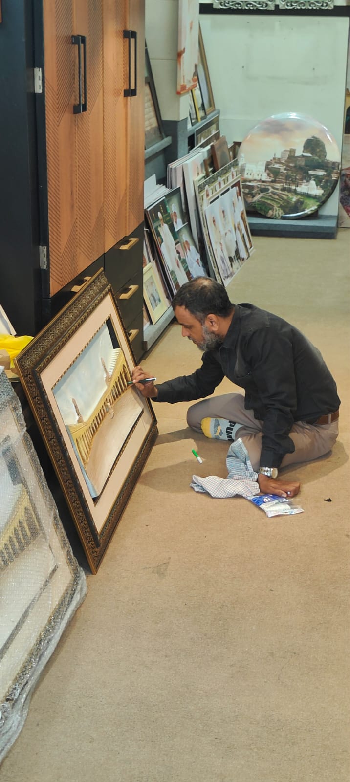 FARM NI SHOP CHE BHAI NI HAVE NEW SHWRROM OPEN KARI RAHA CHE TRANSPORT NAGAR MA ALIF FRAMES NA NAAM SAY ANE BHAI HAVE YA KAAM MA KAI NEW KARWA CHAI RAHA CHE PRINTS AND ART S AND WOODEN WORK NU KAAM NEW CHALO KARO CHE